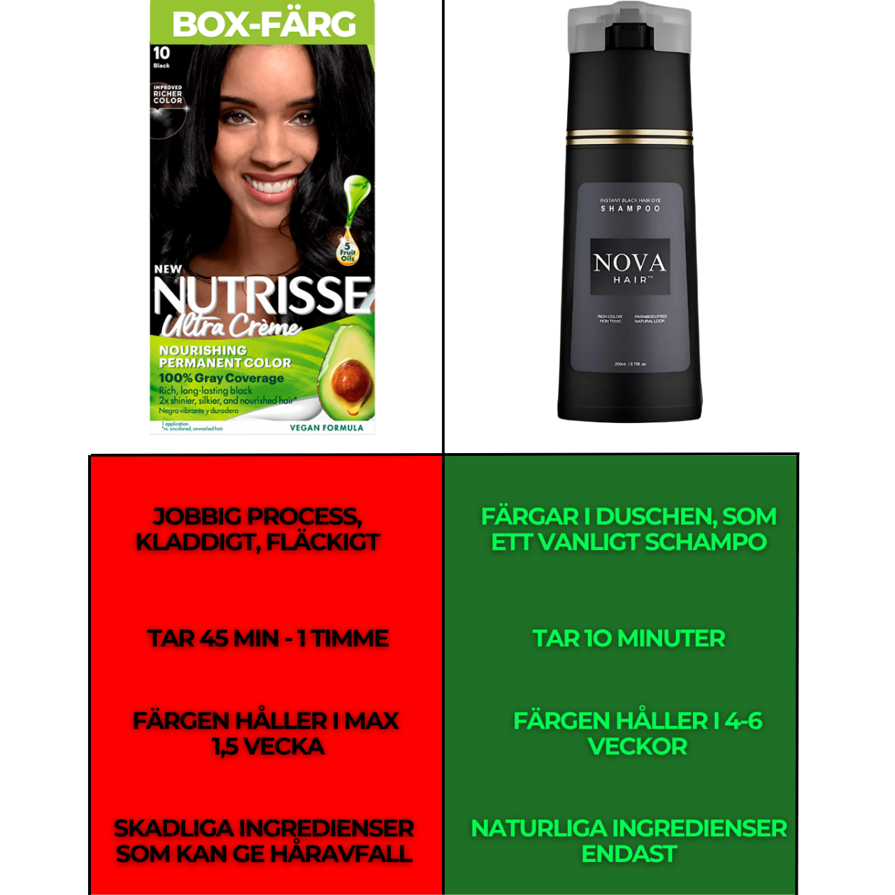 NovaHair ger en perfekt täckning som kan hålla i 4–6 veckor, beroende på hur ofta du tvättar håret. Dessutom kommer det i en praktisk schampoflaska, vilket gör det enkelt att fräscha upp dina rötter när som helst – utan spill eller onödigt slöseri.